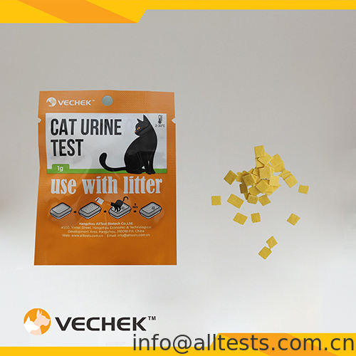 2. Sebarkan semua Uji Kreatinin Urin Kucing secara merata di atas pasir kucing.